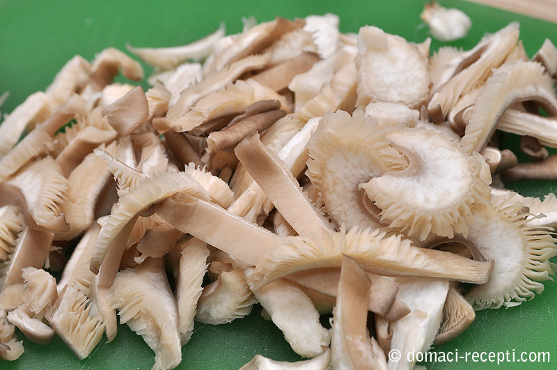 Sitno nasjeckani luk stavimo pirjati.Za to vrijeme režemo bukovače na tanke rezance.Kad luk dobije zlatnu boju, dodamo na njega bukovače i pirjamo zajedno desetak minuta.Bukovače su omekšale i vrijeme je da stavimo razrijeđeni koncentrat rajčice da ih prekrije.Tada ubacimo protisnuti češnjak i na kockice narezanu mrkvu, te lovorov list.